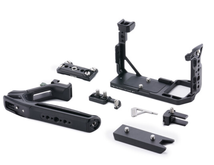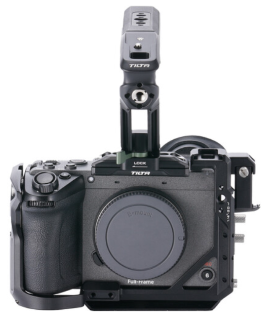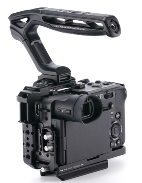 El kit básico Tilta TA-T88-B-B convierte la compacta Sony FX2 en una herramienta de trabajo cinematográfica altamente ampliable, sin sacrificar su ADN «run-and-gun». Este completo paquete negro incluye una jaula completa de fabricación precisa con una barra lateral NATO integrada, una empuñadura superior Xeno de fijación rápida con agarre de silicona y varias roscas para accesorios, una base bidireccional desmontable que admite tanto el cambio rápido del estabilizador DJI RS como los trípodes estándar Arca-Swiss, y abrazaderas especiales para cables HDMI y USB-C/Multi que evitan daños en los puertos. Cada punto de fijación utiliza pasadores de posicionamiento antirrotación y el diseño abierto garantiza que no haya restricciones en los controles de la cámara, la pantalla articulada o el espacio para la batería/tarjeta SD.