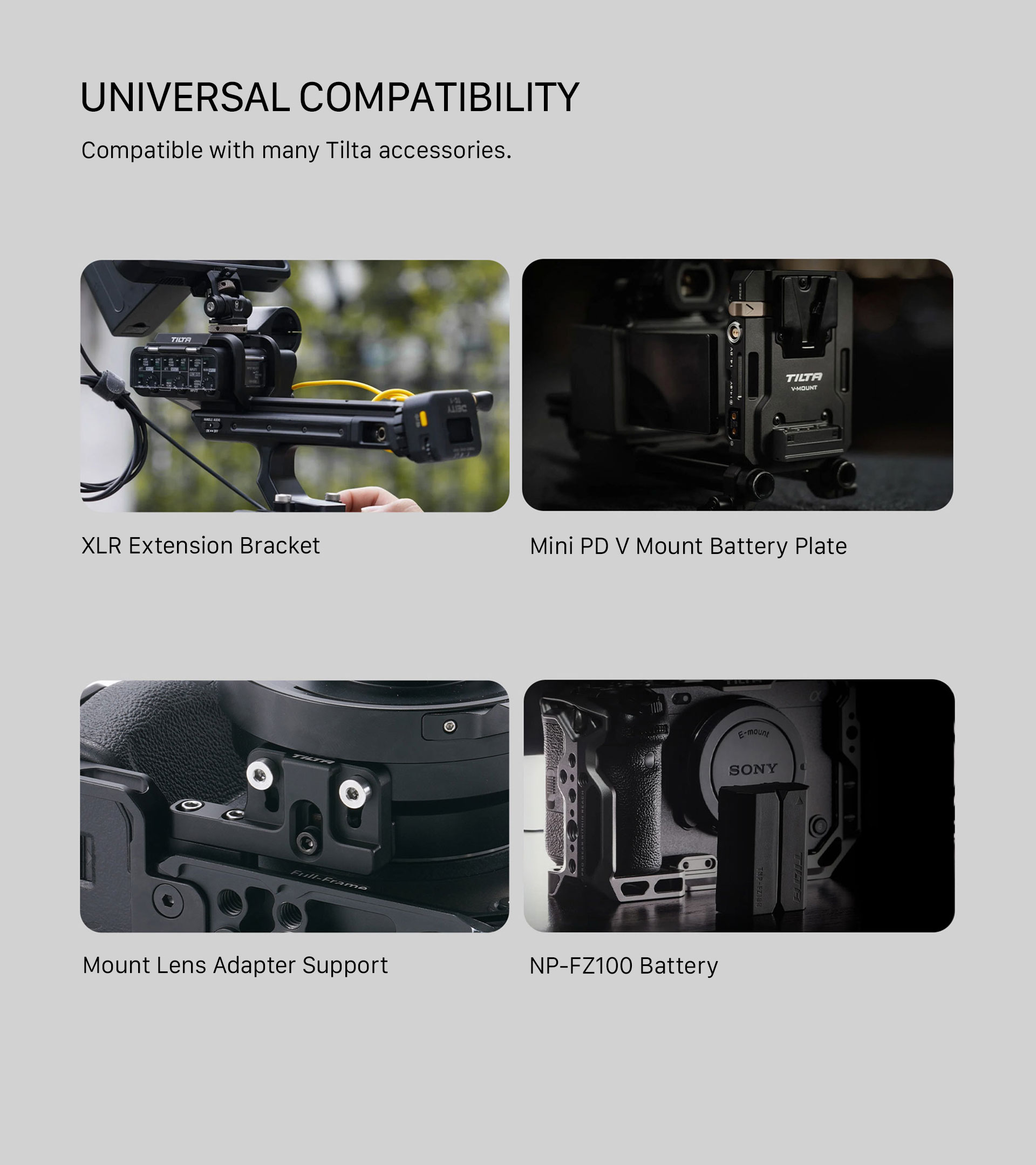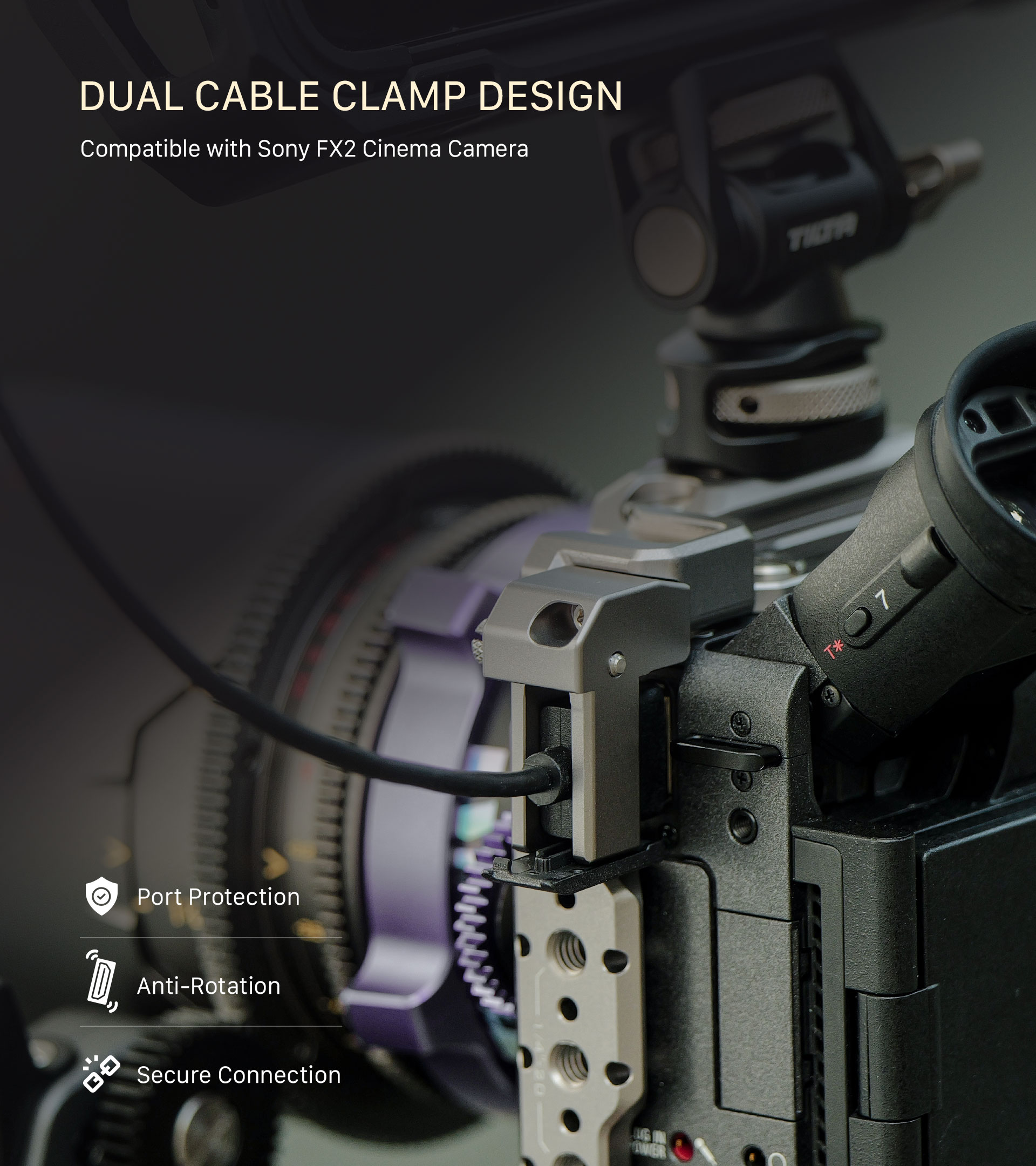 La jaula incluye dos abrazaderas para cables que aumentan la seguridad de los cables HDMI y USB-C, y están equipadas con prácticos tornillos que se pueden apretar con el pulgar sin necesidad de herramientas. El ajuste perfecto de esta jaula mantiene el acceso a todos los puertos y funciones, incluido el visor electrónico (EVF) de la cámara, mientras que su diseño modular garantiza la compatibilidad con una amplia gama de accesorios originales, como la empuñadura superior Sony XLR.