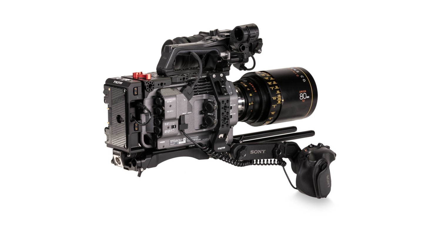 La placa base cuenta además con conexiones Arri Standard Rosette en los lados izquierdo y derecho, que permiten acoplar empuñaduras (o la empuñadura de control personalizada de la Sony PXW-FX9) para el control manual.