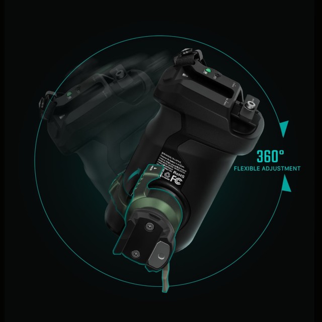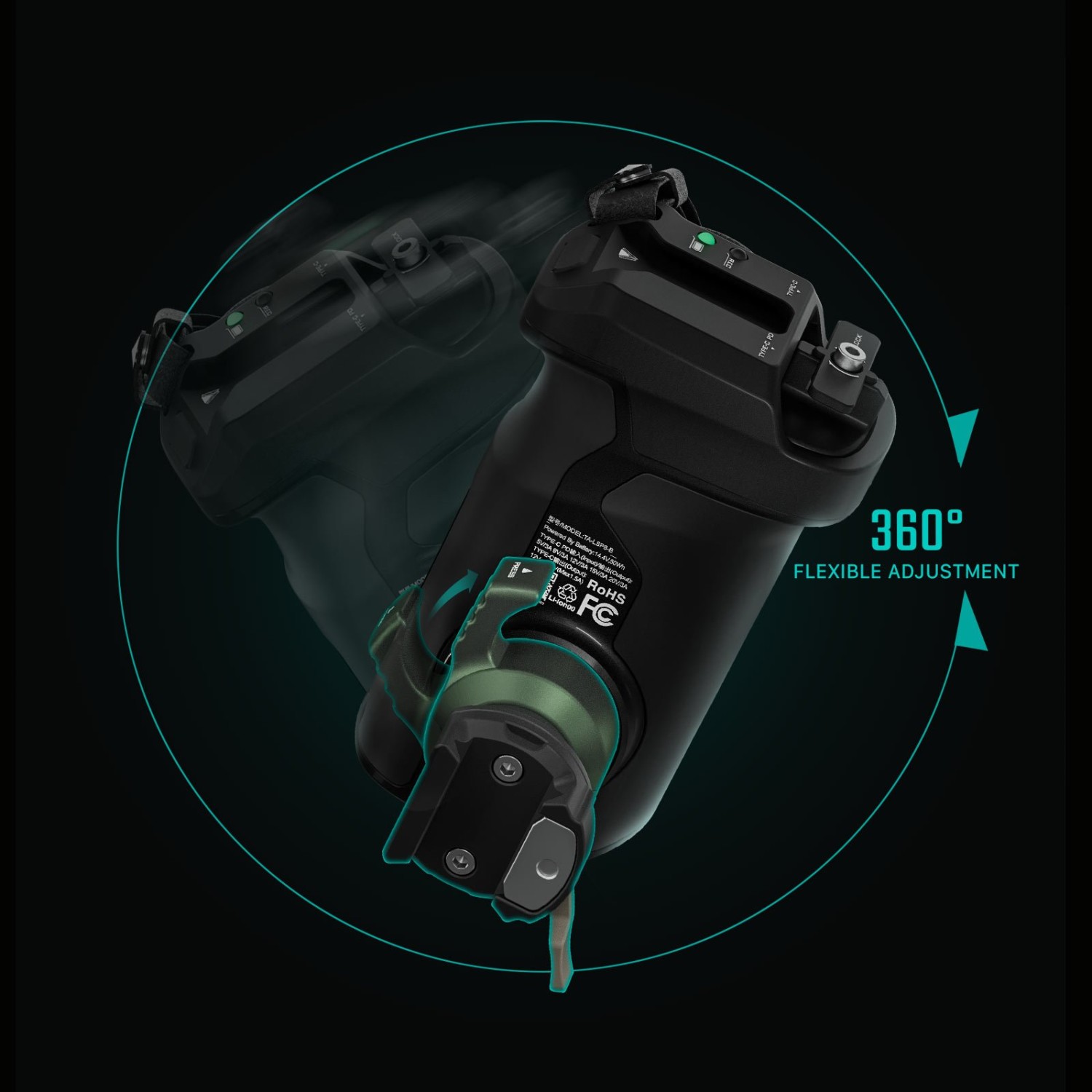 El kit avanzado incluye una empuñadura lateral PD con una batería interna de alta capacidad de 50 vatios-hora, que proporciona 50 vatios de potencia al sistema de refrigeración y prolonga el tiempo de funcionamiento. La palanca de liberación de la empuñadura permite un ajuste rápido y preciso del ángulo de la misma, lo que simplifica el manejo y crea un flujo de trabajo más eficiente. El kit también incluye una empuñadura superior que amplía las opciones de montaje y, al mismo tiempo, mejora la flexibilidad para operar con diferentes configuraciones y ángulos de giro. Estos sistemas de empuñaduras transforman la jaula de una funda protectora en un equipo de producción totalmente integrado.
