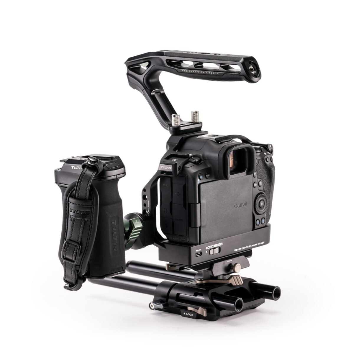 El Tilta Camera Cage con sistema de refrigeración para Canon R5 Mark II Advanced Kit ofrece una solución integral para cineastas profesionales y creadores de contenido que utilizan la cámara Canon R5 Mark II. Este kit avanzado está diseñado específicamente para la Canon R5 Mark II, lo que garantiza un ajuste perfecto y una integración fluida con el cuerpo de la cámara. El sistema combina una carcasa protectora con control activo de la temperatura, lo que resuelve una de las principales limitaciones de la grabación de vídeo en alta resolución en esta plataforma de cámara.