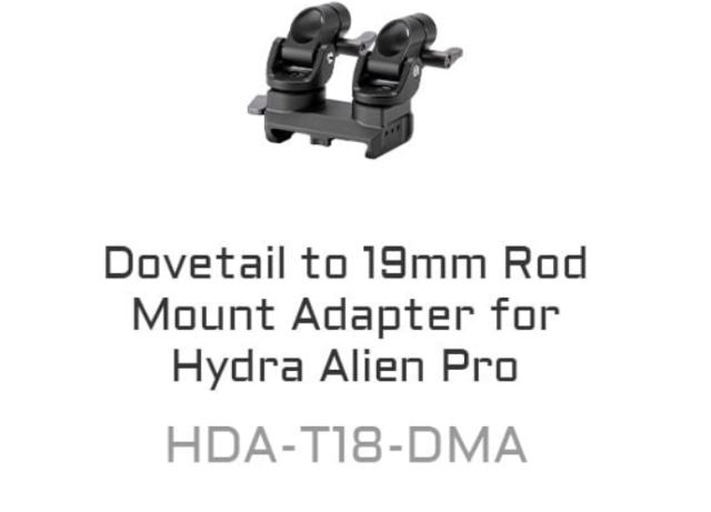 El adaptador Tilta HDA-T18-DMA para montaje en barra de 19 mm es un resistente puente de aluminio en color Space Grey que transforma la base del brazo amortiguador ARRI Hydra Alien Pro en una abrazadera fija de 19 mm para barras de estudio, lo que te permite fijar el brazo, con una capacidad de carga de 20 kg, directamente a un Speed Rail de 19 mm, un andamio o cualquier tubo de 19 mm para una fijación ultrarresistente en altura, lateral o en el propio vehículo.