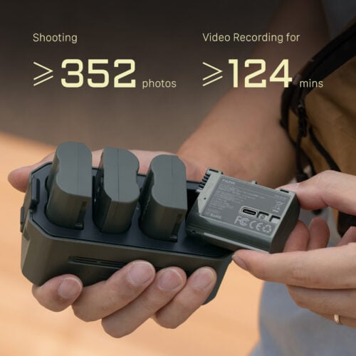 Una batería Tilta EN-EL15C permite tomar ≥352 fotografías y grabar vídeo durante ≥124 minutos, lo que ofrece una gran autonomía.
