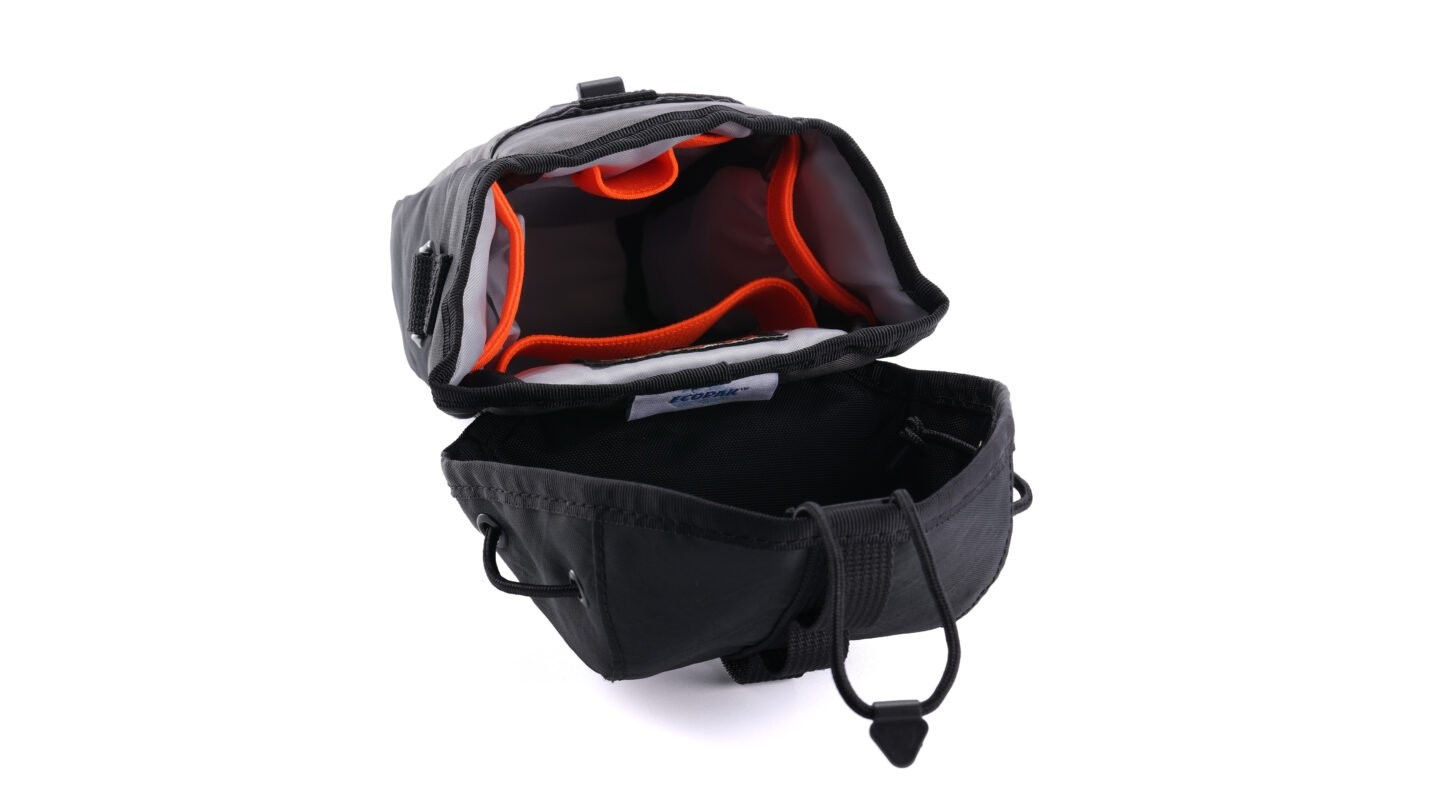 • Material ecológico y de alto rendimiento: El bolso está fabricado con material ECOPAK® EPX200, producido por la empresa Challenge Sailcloth. Este material está fabricado con fibras de poliéster y láminas 100 % recicladas, lo que lo hace totalmente ecológico. Es naturalmente resistente, impermeable y a prueba de desgarros, por lo que tu equipo estará protegido de las inclemencias del tiempo.