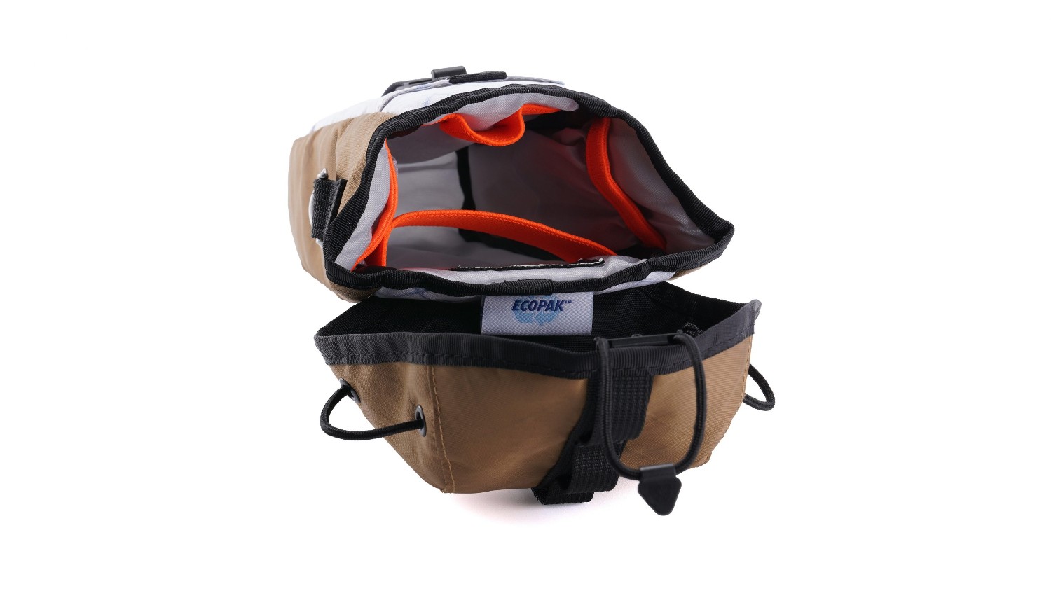 Material ecológico y de alto rendimiento: El bolso está fabricado con material ECOPAK® EPX200, producido por la empresa Challenge Sailcloth. Este material está fabricado con fibras de poliéster y láminas 100 % recicladas, lo que lo hace totalmente ecológico. Es naturalmente resistente, impermeable y a prueba de desgarros, por lo que tu equipo estará protegido de las inclemencias del tiempo.