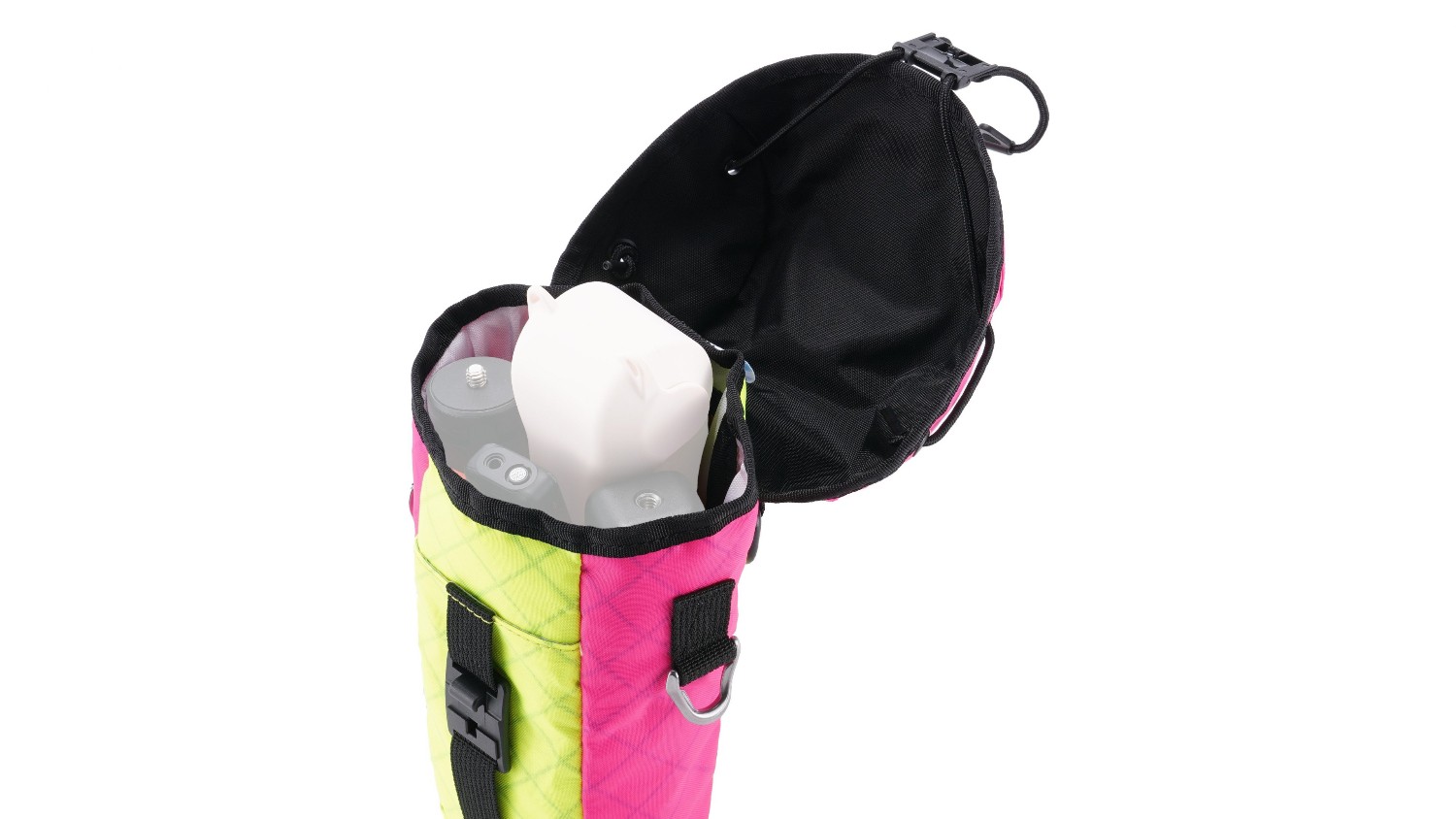 Sistema de sujeción universal: La bolsa está equipada con un ingenioso gancho en la parte trasera con un anilla en D DURAFLEX y un mosquetón en forma de S de aleación de aluminio. Este mosquetón es extremadamente resistente y ofrece una capacidad de carga máxima de 143,3 libras (65 kg), lo que permite a los usuarios fijar fácilmente la bolsa directamente a la ropa (por ejemplo, a la presilla del cinturón) o utilizarla para sujetar otro equipo necesario.
