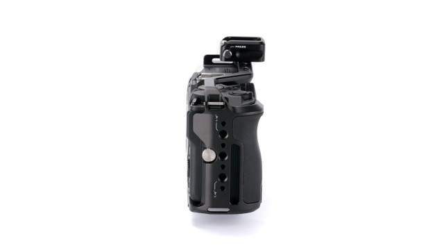 La jaula sigue permitiendo un fácil acceso a todas las funciones básicas de la cámara, por lo que tendrás acceso continuo a los puertos de la cámara, los botones de usuario y el compartimento de la batería sin tener que quitar la jaula.