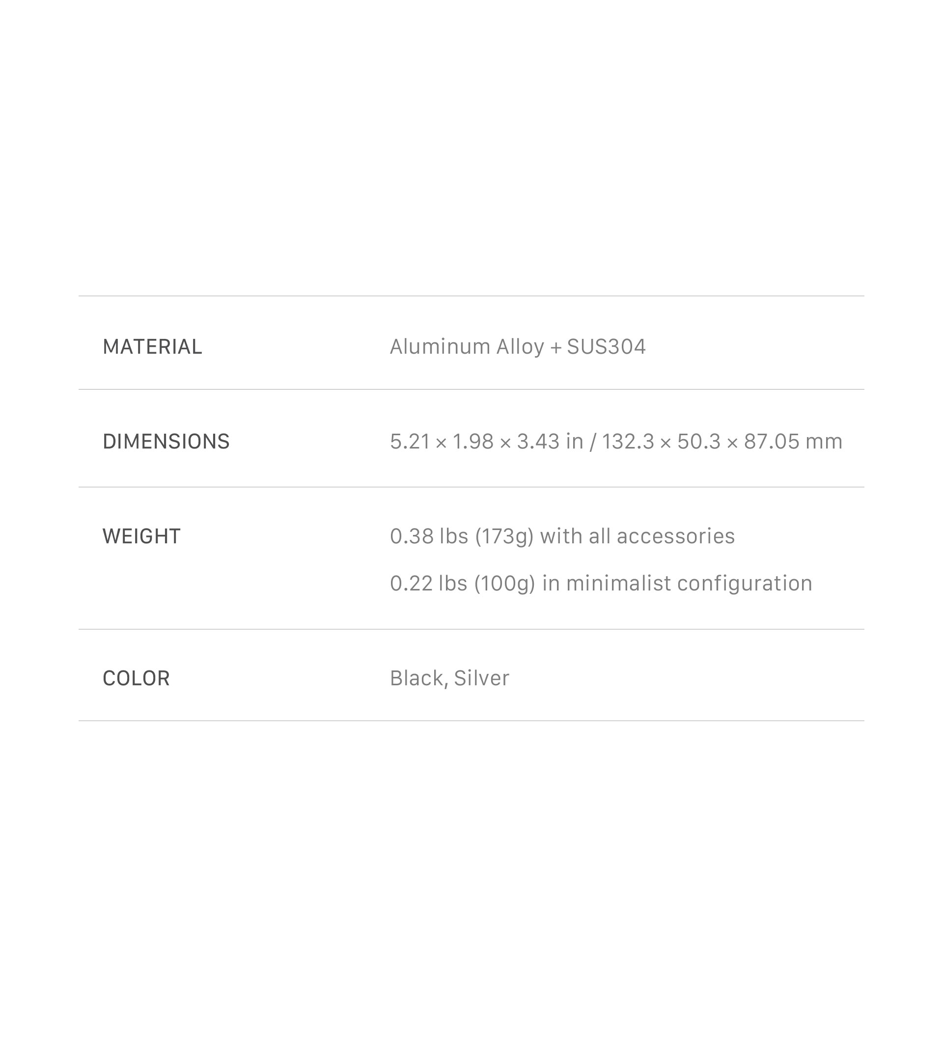 Esta carcasa presenta un nuevo diseño que permite retirar los tres puntos de fijación principales cuando no son necesarios, ya que las placas de montaje NATO, Cold Shoe y ARCA son desmontables.