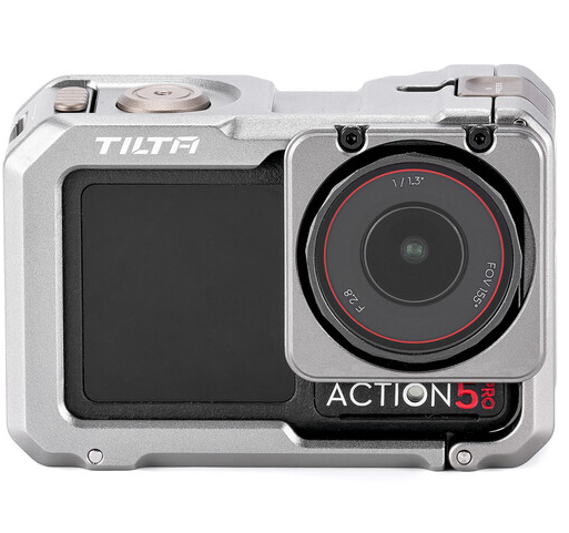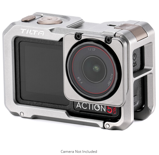 La jaula completa para cámara Tilta TA-T72-FCC-TG (gris titanio) es un resistente marco protector para la DJI Osmo Action 5 Pro/4/3, listo para grabar, que incorpora soporte para filtros magnéticos, un sistema de fijación rápida a ambos lados para cambiar la batería al instante, un orificio superior, una rosca lateral de 1/4"-20 y compatibilidad total con la base magnética y los filtros de acción de Tilta, todo ello en un ligero cuerpo de 150 g fabricado en magnesio y aluminio con almohadillas de silicona amortiguadoras.