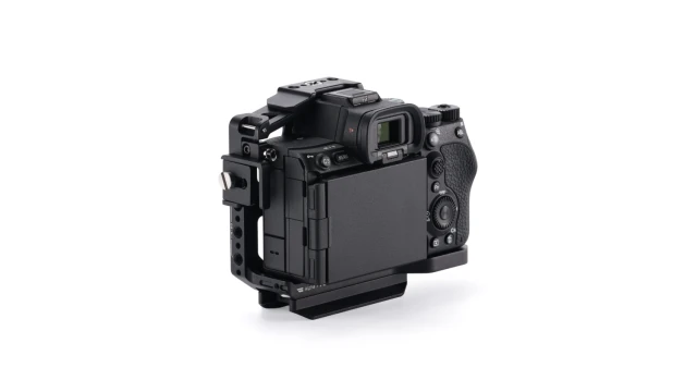 Esta sencilla jaula de Tilty cuenta con un diseño deslizante ajustable que permite un ajuste preciso de la posición para una fijación segura en varios cuerpos de cámara. Por ello, es ideal para usuarios que trabajan con varias cámaras. La jaula es compatible con las cámarasSony α7V, α7IV y α7R V.