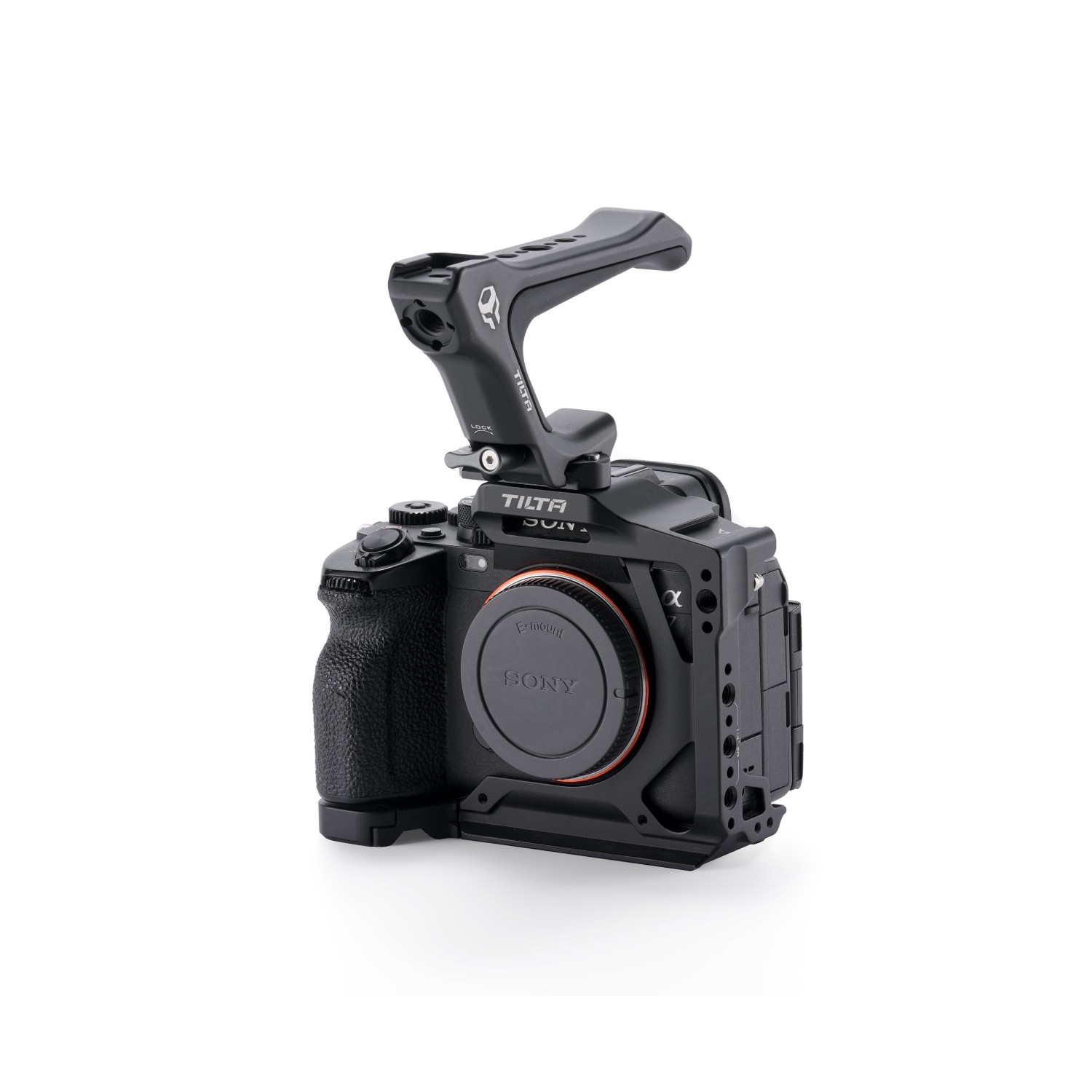 La jaula de cámara Tilta Half para Sony Alpha 7 V, kit ligero, negro, es un kit de montaje diseñado con precisión y especialmente pensado para el cuerpo de la cámara Sony Alpha 7 V, y es compatible también con los modelos Alpha 7 IV y Alpha 7R V. Esta jaula ligera de media altura está equipada con un mecanismo deslizante ajustable que permite un posicionamiento preciso y una fijación segura en estos cuerpos de cámara, lo que la hace ideal para fotógrafos híbridos, videógrafos y fotógrafos que alternan entre varios sistemas sin espejo de Sony. El kit conserva la forma compacta de la cámara y, al mismo tiempo, amplía las posibilidades de fijación de accesorios, lo que garantiza un acceso sin obstáculos a todos los controles, puertos, compartimento de la batería y ranuras para tarjetas de memoria.