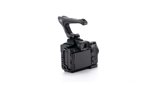 El kit ligero incluye la empuñadura superior Xeno, que se fija mediante una rosca de 1/4 pulgadas-20 a la placa superior de la jaula y ofrece un mejor agarre para el control con ambas manos y tomas desde ángulos bajos. Esta elegante empuñadura cuenta con puntos de fijación adicionales, incluyendo varias roscas de 1/4 pulgadas-20 y un soporte propio para flashes sin calor, ideal para monitores externos o luces. Su diseño con mayor holgura mejora la flexibilidad sin comprometer el perfil aerodinámico del conjunto.