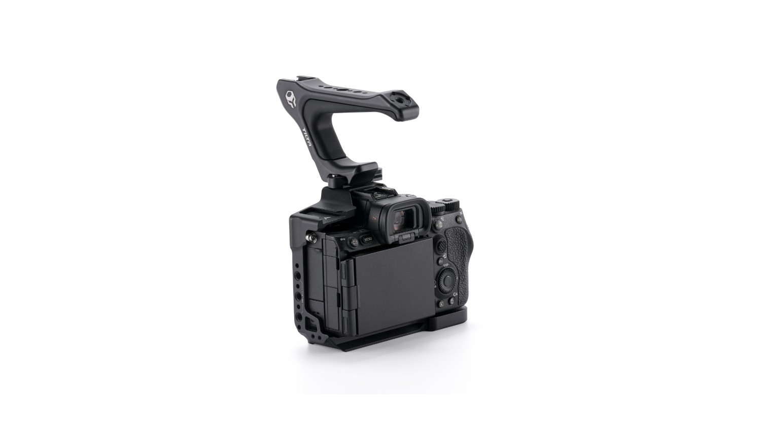 En su preciso diseño se ha puesto énfasis en la ergonomía y la accesibilidad. Los ingeniosos recortes proporcionan libre acceso a todos los botones, controles giratorios, pantalla LCD, entrada de micrófono, conector para auriculares, puerto HDMI, conectores USB-C y botón de liberación del objetivo. El cambio de batería y tarjeta de memoria se realiza sin desmontar la jaula, y la compatibilidad se extiende a flashes OEM, empuñaduras de micrófono y adaptadores de objetivos, lo que garantiza un funcionamiento fluido en condiciones de rodaje dinámicas.
