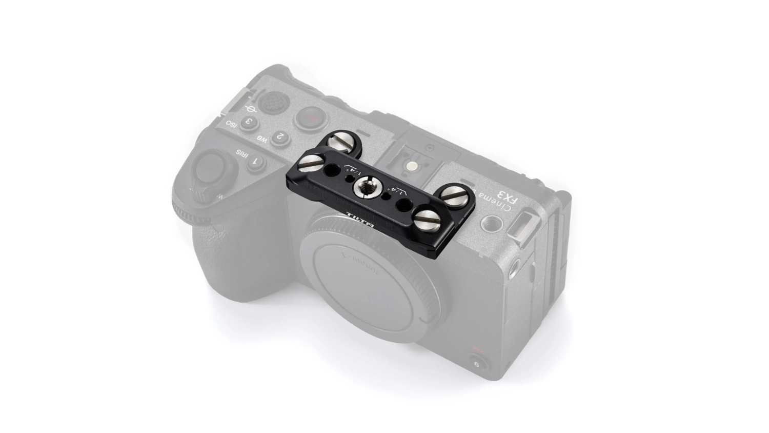 Esta placa superior deja espacio libre para la zapata de la FX3/30 y permite a los usuarios utilizar accesorios como el micrófono Sony ECM-W3.