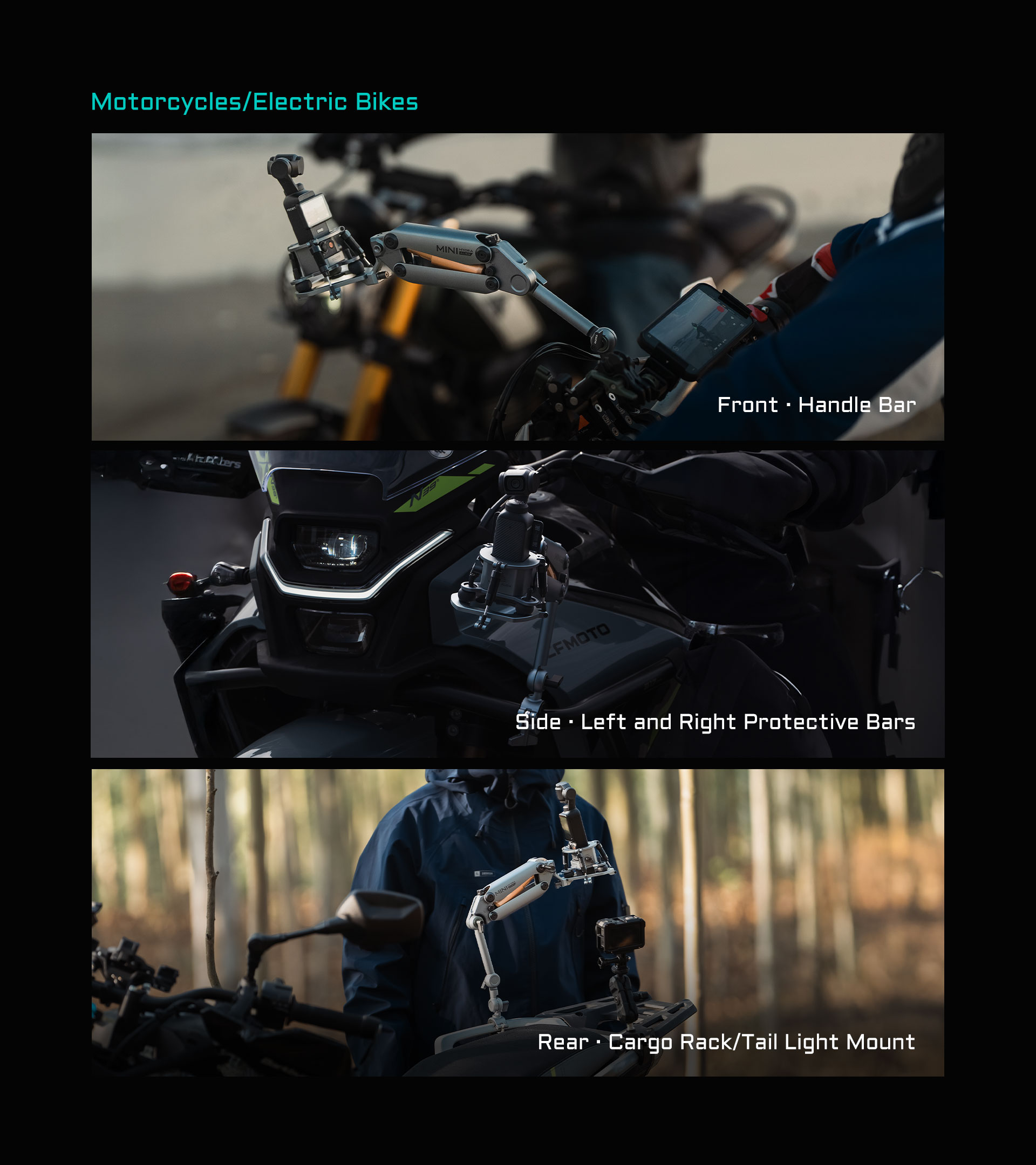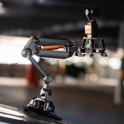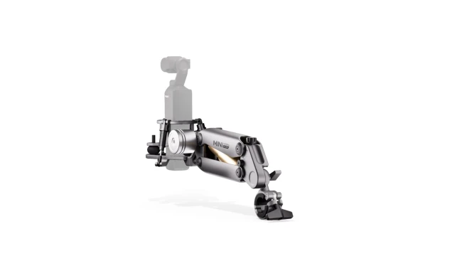 Este soporte en miniatura es compatible con sistemas de cámara más pequeños, como DJI Action 3/4, DJI Pocket 3, Insta360 X4/X3 y cualquier otro sistema con un peso de hasta 1,32 libras, incluidos los smartphones con nuestro ecosistema Khronos.