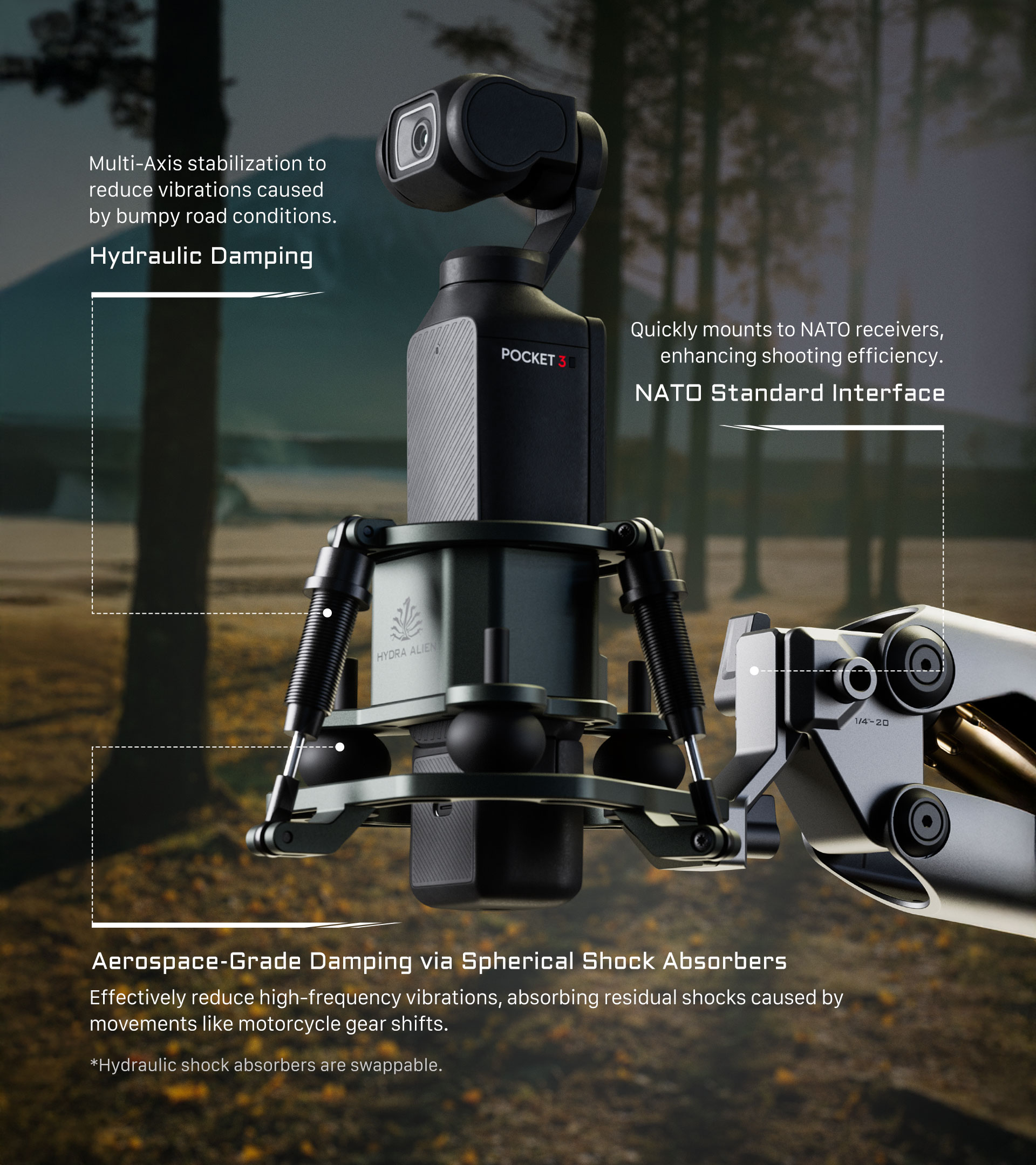 El amortiguador está fabricado con precisión y diseñado específicamente para el Hydra Alien Mini, por lo que se integra fácilmente en tu equipo actual.