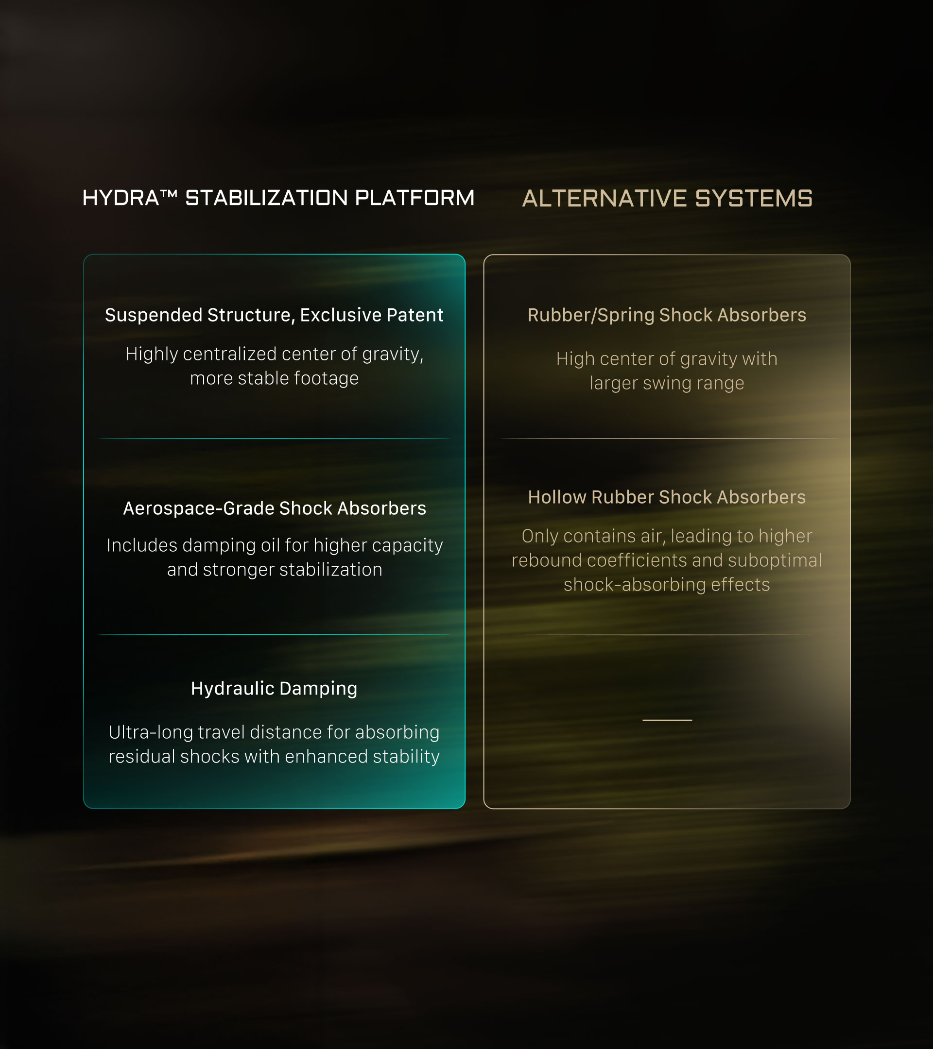El amortiguador es una herramienta diseñada para suprimir las microvibraciones que pueden afectar a la estabilidad de la imagen. Este accesorio especial mejora el rendimiento del Alien Mini y garantiza resultados fluidos y profesionales incluso en condiciones exigentes.