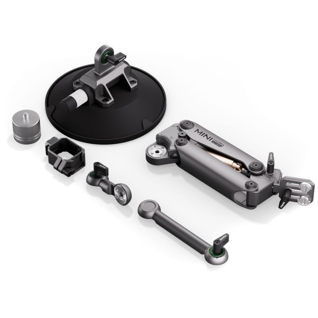 Graba vídeos fluidos durante tus viajes con una cámara de acción y el kit de soporte para coche Hydra Alien Mini Car Mount Kit en color gris titanio de Tilta. Este soporte para coche, compacto y ligero, cuenta con un brazo amortiguador que sujeta tu cámara en el coche o en cualquier otro vehículo. Incluye un soporte de 15 cm con ventosa, un brazo de extensión, un contrapeso y una funda de transporte blanda.