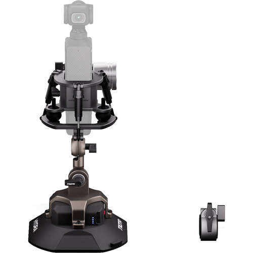El kit está fabricado en aleación de aluminio aeronáutico y mecanizado con precisión mediante CNC, y pesa tan solo 2,6 kg. Su sistema de amortiguación hidráulica utiliza aceite amortiguador de calidad automovilística, lo que garantiza una estabilización de nivel profesional al reducir las microvibraciones. La ventosa electrónica incluida supervisa activamente la presión y ajusta automáticamente la succión, con una autonomía de hasta 14 horas gracias a su batería de 2000 mAh.