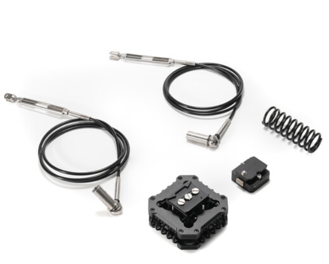 El kit Tilta HDA-T08-MK-R2 sustituye los amortiguadores de poliuretano estándar por amortiguadores de acero, que destacan por su capacidad para amortiguar las fuertes vibraciones provocadas por carreteras irregulares y a alta velocidad. Un muelle más rígido para cargas elevadas aumenta la carga de trabajo segura a 28,7 lb, mientras que la placa de fijación rápida Ronin 2 incluida permite el montaje directo del cardán sin necesidad de herramientas y sin juntas de cola de milano adicionales. Dos cables de soporte de acero inoxidable de 2 metros aumentan la redundancia y estabilizan aún más el sistema. Nota: esta modificación limita el brazo a solo dos secciones (sin la tercera extensión) para mantener un margen de seguridad con cargas útiles más elevadas.