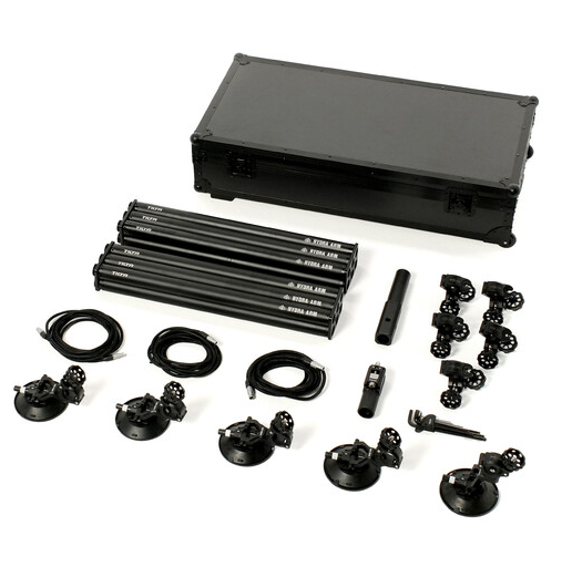 El brazo Hydra está diseñado para montarse en los deslizadores motorizados Tilt Hydra o directamente en rieles rápidos de 2" en vehículos, y es ideal para filmar desde automóviles, barcos o en el terreno. El sistema ajustable de amortiguación por resorte permite ajustar con precisión la tensión del brazo para que se adapte al peso y a los requisitos de movimiento de su equipo de cámara.