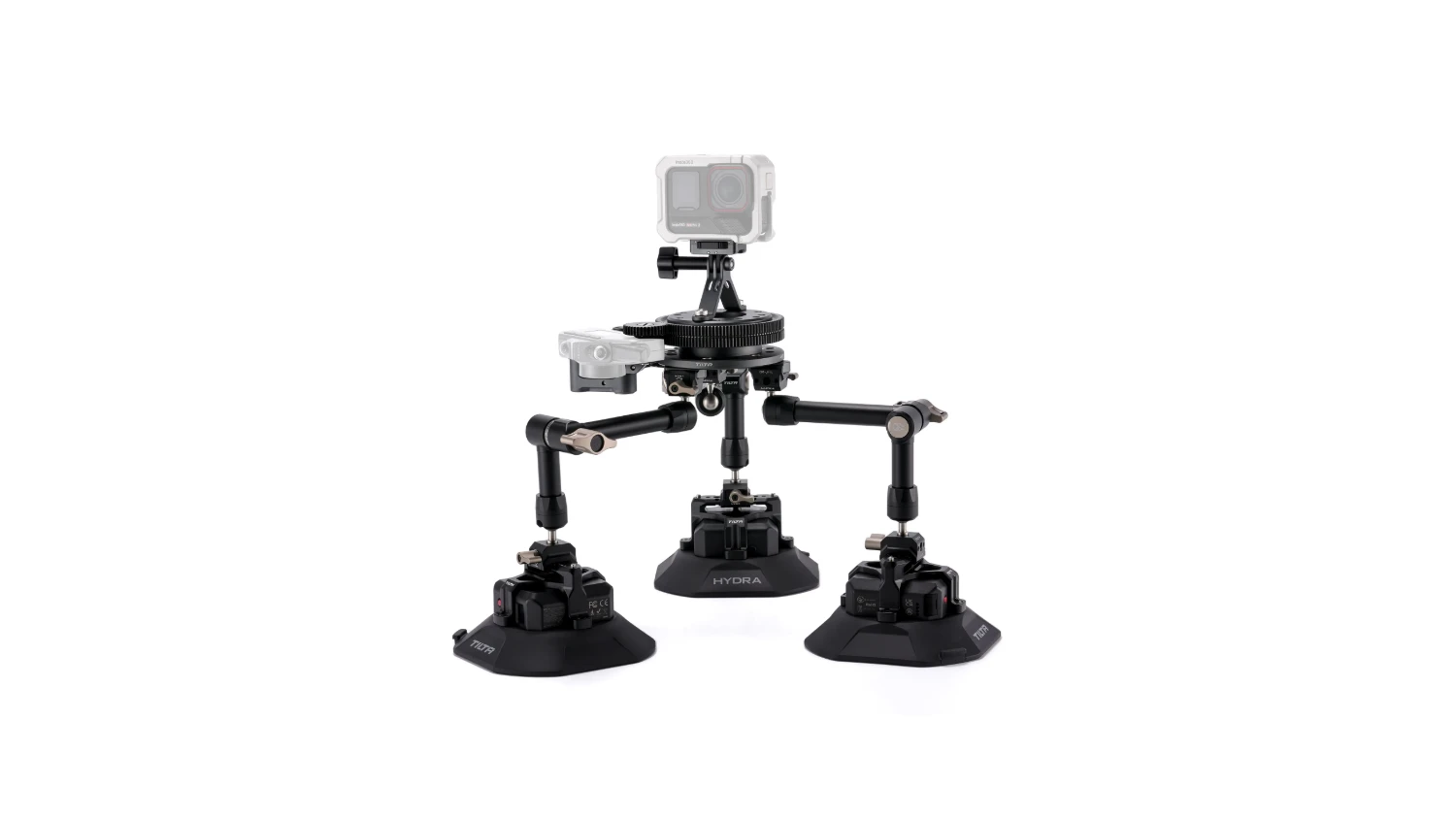 El kit Pro Kit incluye tres brazos articulados resistentes y tres ventosas electrónicas. Esto proporciona una opción de fijación segura y flexible para nivelar el sistema en diferentes ángulos sobre el vehículo.