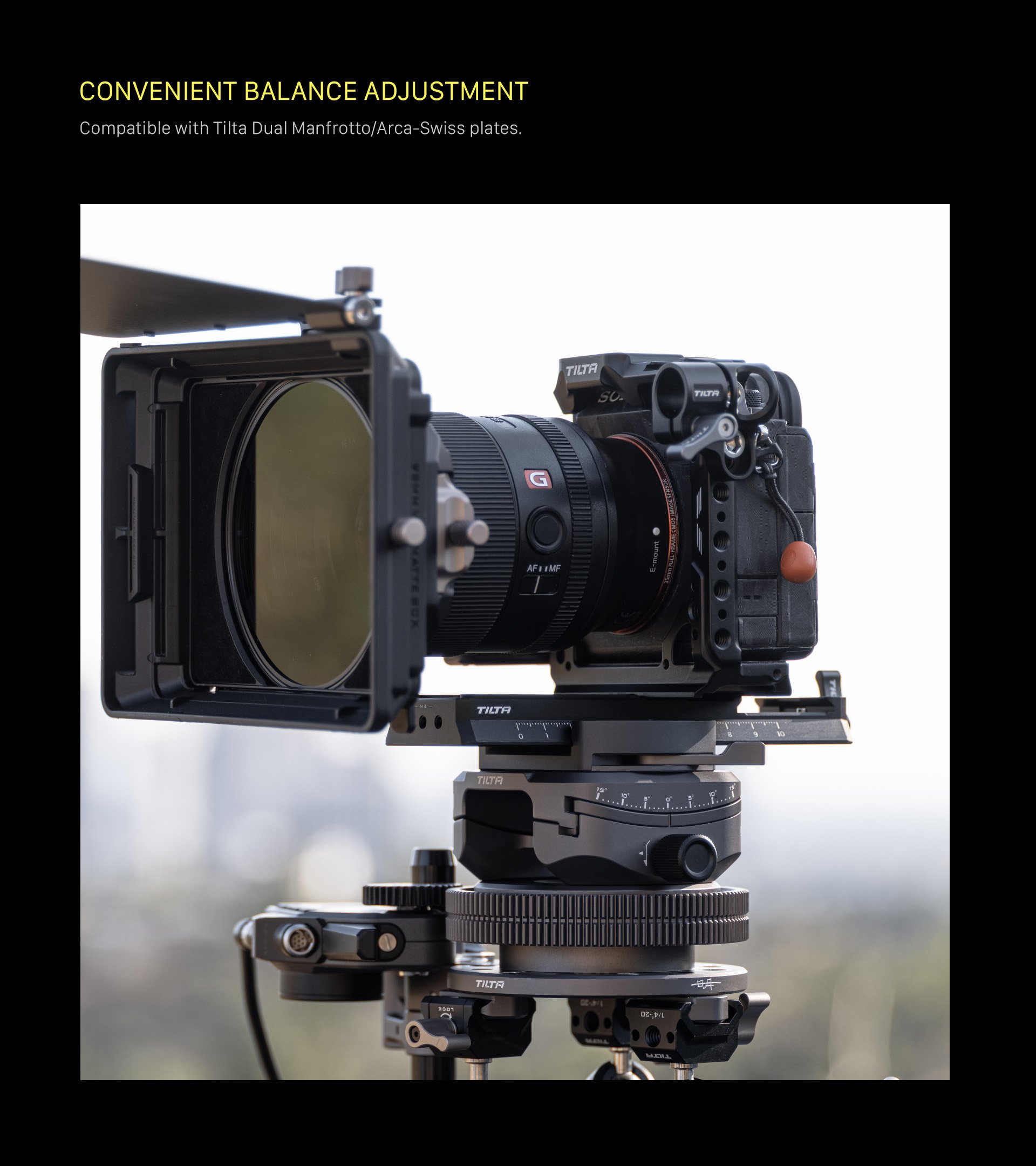 Esta base también está equipada con un eje de inclinación ajustable que ayuda a encuadrar y crear ángulos únicos.