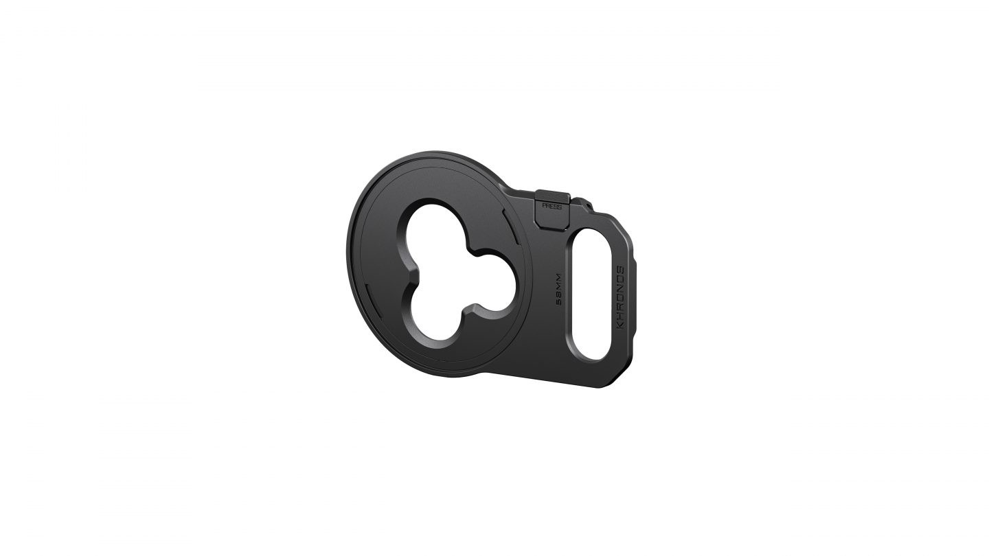 El compartimento para filtros Tilta Khronos de 58 mm en color Space Gray es una solución de montaje especial para la carcasa Khronos del iPhone 17 Pro Max, que ofrece un espacio seguro y de fácil extracción para filtros circulares magnéticos de 58 mm.