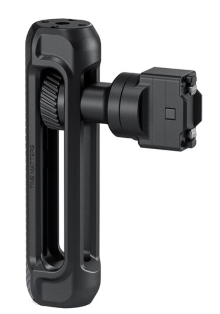 Mejora tu jaula Tilta Khronos con la empuñadura ajustable TK-AH-B, diseñada para ofrecer un control y una flexibilidad excelentes durante el giro manual. La empuñadura se fija de forma segura a cualquier lado de la jaula Khronos mediante una abrazadera de bloqueo y está equipada con un agarre de silicona suave y antideslizante para una comodidad máxima. La altura se puede ajustar hasta 53 mm y la empuñadura gira 180° en ángulos de cinco grados, lo que permite utilizarla como empuñadura lateral o superior. Tanto la parte superior como la inferior cuentan con roscas de 1/4"-20 para fijar accesorios como monitores, micrófonos o luces. Esta empuñadura ajustable, ligera y resistente, es ideal para crear una configuración ergonómica para ambas manos, lo que hará que grabar con el smartphone sea más estable y versátil.