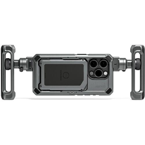 El kit ligero Tilta Khronos para iPhone 15 Pro, en color gris espacial, está diseñado para los entusiastas de la filmación con el móvil. Este kit, que incluye una funda Khronos para iPhone 15 Pro y una empuñadura ajustable, se integra a la perfección en el ecosistema de accesorios Khronos. Gracias a su resistente carcasa con 4 tornillos y una abrazadera de bloqueo con 9 puntos de montaje, tu iPhone 15 estará protegido de forma segura. Además, los puntos de contacto electrónicos facilitan la alimentación, mientras que el mango ajustable ofrece un ajuste versátil de la altura y un giro de 180°. Este kit, fabricado con roscas de 1/4"-20 y un cómodo mango de silicona, garantiza comodidad y flexibilidad para tus proyectos de filmación.