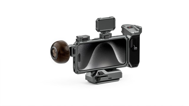 La empuñadura se conecta al iPhone 15 mediante un cable USB-C integrado y utiliza Bluetooth para controlar el enfoque o el zoom mediante un selector situado en la parte frontal de la empuñadura. Esto también garantiza una mayor estabilidad al manejar el sistema, y el botón de grabación asegura que los usuarios no tengan que soltar la empuñadura para empezar a grabar.
