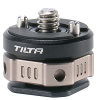 El adaptador Tilta TA-PMB5-CS-B Cold Shoe es un conector compacto y resistente de