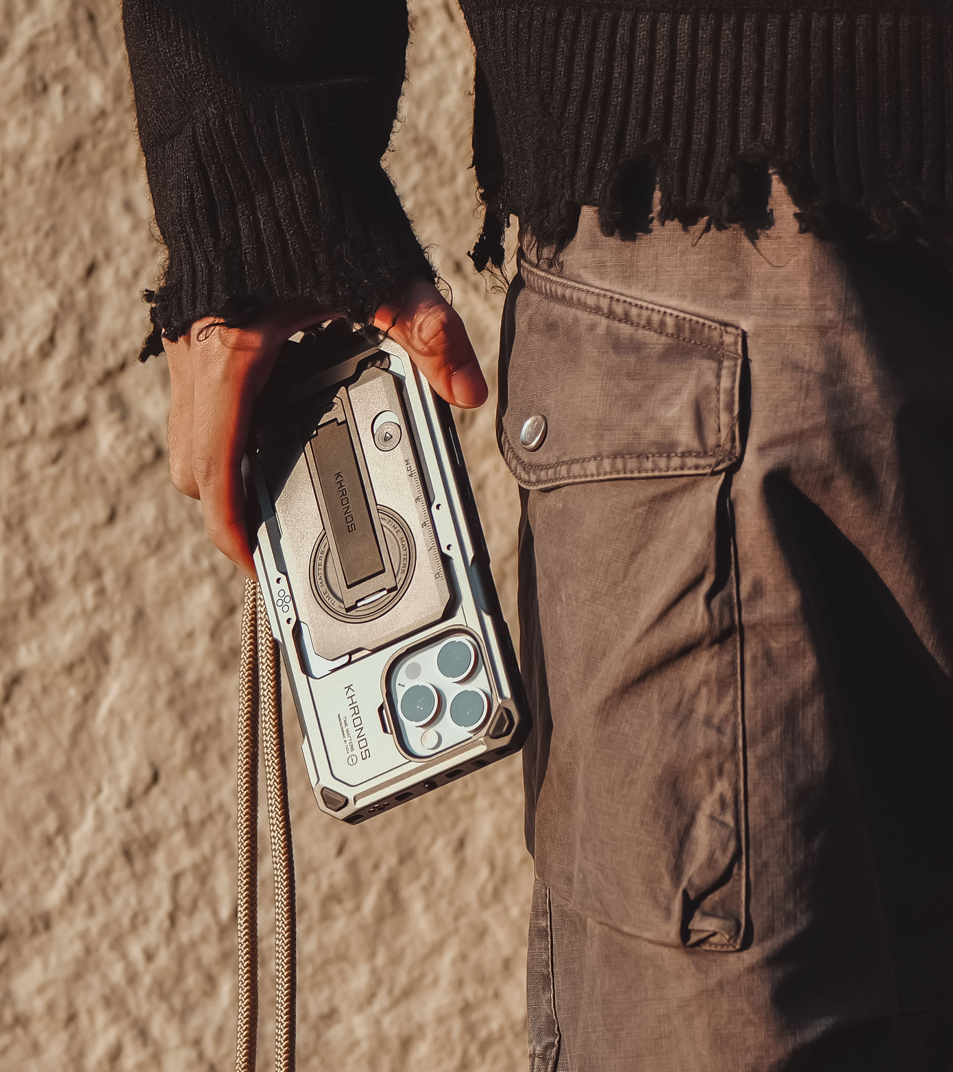 Presentamos la funda Khronos para iPhone 16 Pro Max, la nueva generación de la filmación móvil. Esta funda para smartphone, inspirada en una jaula de cámara y cuidadosamente diseñada para ambos modelos de iPhone 16, ofrece una combinación única de funcionalidad y elegancia. La funda Khronos, creada para proteger tu teléfono del desgaste diario, ofrece una protección fiable sin sacrificar el estilo ni la funcionalidad.