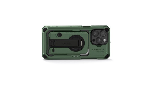 La funda Khronos cuenta con puntos de contacto electrónicos integrados en toda su superficie, lo que permite transmitir energía a través de la carcasa para alimentar los accesorios cuando se utiliza la empuñadura de alimentación opcional. Una novedad de la funda para el iPhone 16 es la barra táctil para controlar la cámara, que ofrece a los usuarios acceso completo a las funciones de la barra táctil del iPhone 16.