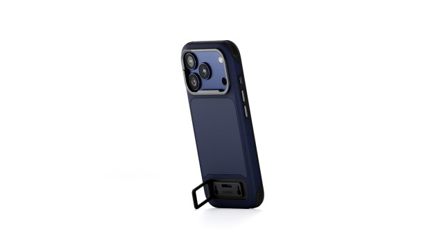 La funda Tilta Khronos Lite en color azul oscuro es una funda protectora ligera y profesional diseñada específicamente para el iPhone 17 Pro. Cuenta con un soporte integrado para ver el dispositivo sin necesidad de usar las manos, una placa trasera magnética para fijar accesorios y una protección reforzada para la cámara y las esquinas.