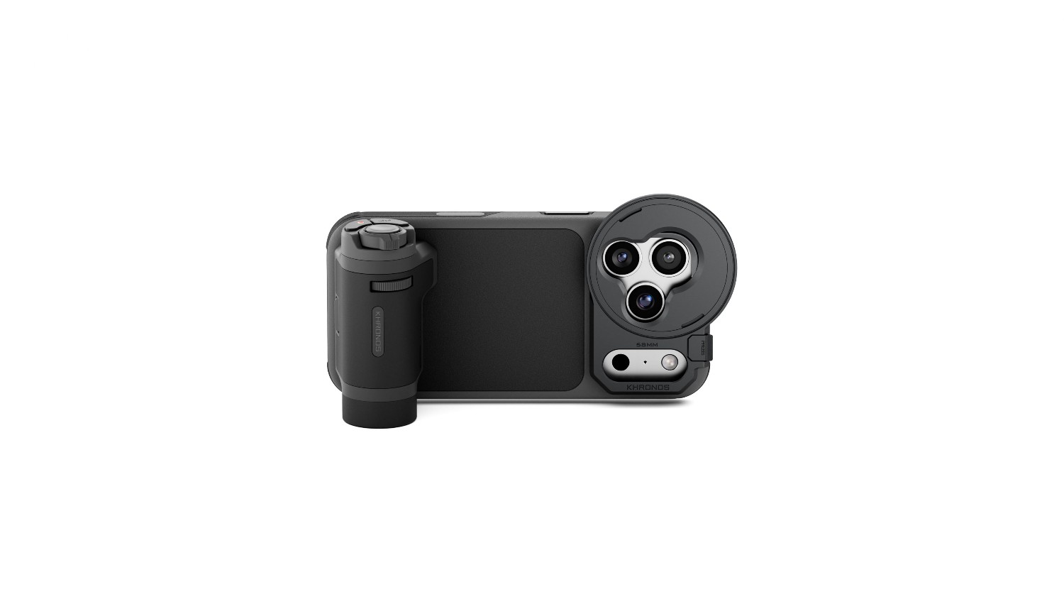 • Mango ergonómico con Bluetooth: el ligero mango, incluido en el paquete, se acopla directamente a los puntos de montaje del soporte de la funda Khronos Lite. Se comunica a través de Bluetooth, por lo que el puerto USB-C de tu iPhone queda libre para la carga, un SSD externo o concentradores. Controla el enfoque, el zoom, el disparador y la grabación directamente desde el mango.
