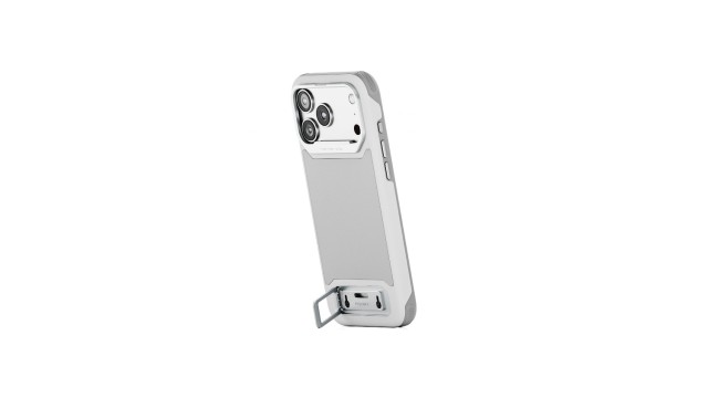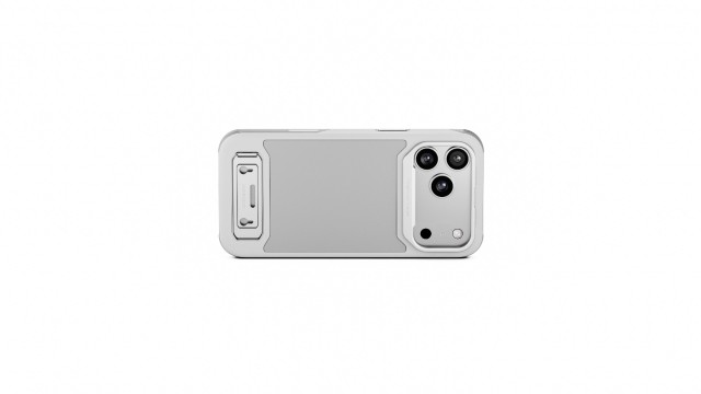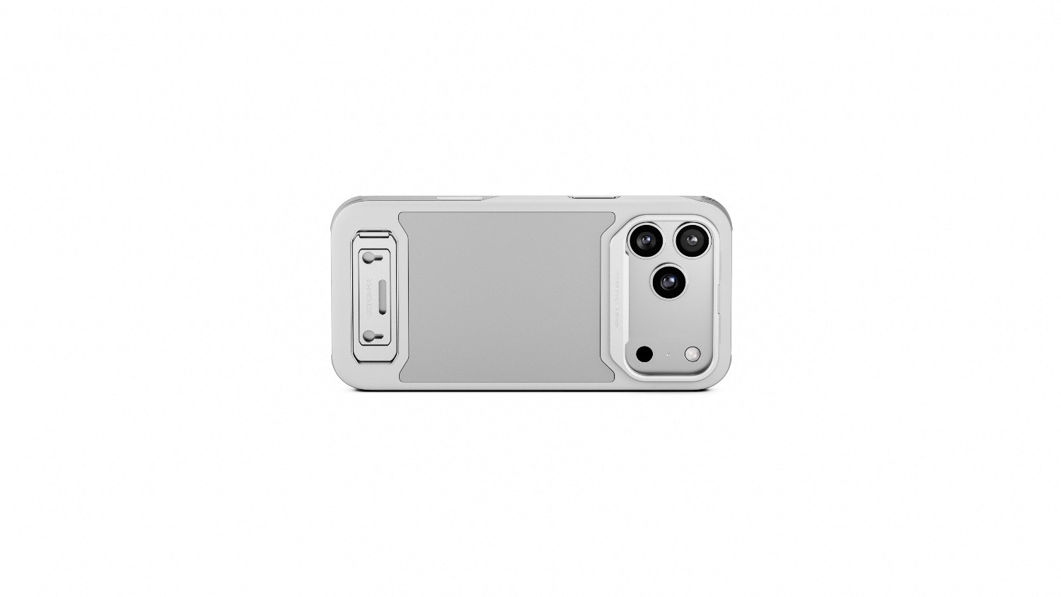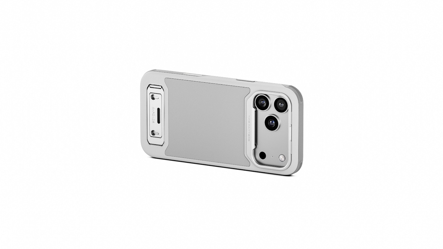 Breve descripción: La funda Tilta Khronos Lite Case en color gris claro es una funda protectora ligera para el iPhone 17 Pro/Pro Max, diseñada para mejorar tanto el uso diario como el profesional. Cuenta con un soporte integrado vertical/horizontal, una placa trasera magnética para accesorios (SSD, luces, baterías externas), un anillo metálico protector para la lente, esquinas reforzadas y un paso táctil capacitivo para el botón de control de la cámara.