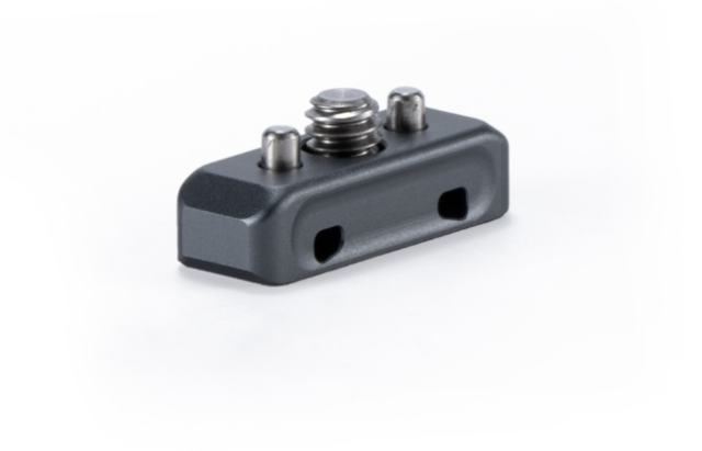 El TA-UAA-1420-B es un adaptador compacto de aluminio que se atornilla de forma segura a cualquier orificio estándar con rosca de 1/4"-20 y cuenta con dos pasadores de posicionamiento tipo ARRI para evitar cualquier torsión. Una vez instalado, ofrece el característico receptor de fijación rápida Khronos, que permite conectar y desconectar cualquier accesorio compatible con Khronos (empuñaduras laterales, empuñaduras de alimentación, etc.) en cuestión de segundos, sin necesidad de utilizar una llave hexagonal. Ideal para fotógrafos híbridos que desean compartir las empuñaduras Khronos entre su iPhone 15 Pro/Max y cámaras sin espejo, como la Sony FX3, la Canon R5C o la Z CAM, o para cambios rápidos de orientación en la misma cámara.