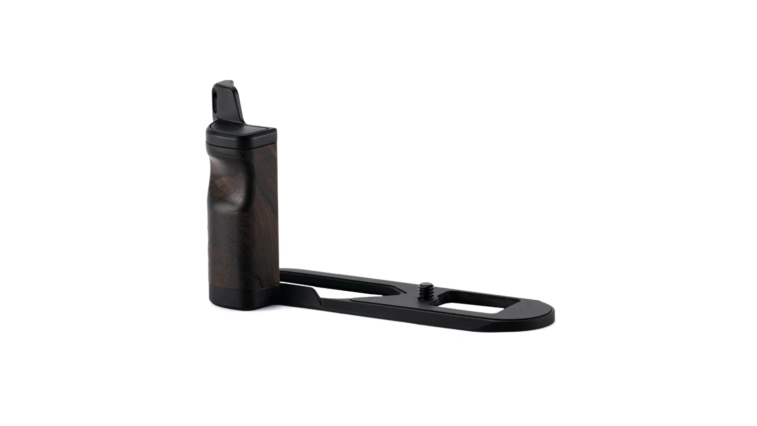 Este accesorio en forma de soporte en L está equipado con un mango de madera de nogal que proporciona una forma más cómoda de controlar y manejar la cámara.