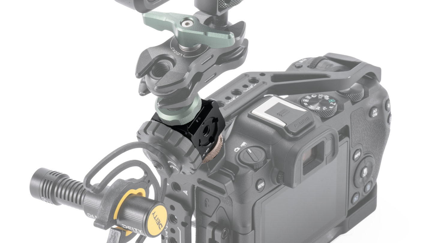 Este soporte se acopla mediante un conector Cold Shoe, que permite fijarlo fácilmente a la mayoría de nuestras jaulas para cámaras, o mediante una rosca de 1/4″-20 situada en la parte inferior.