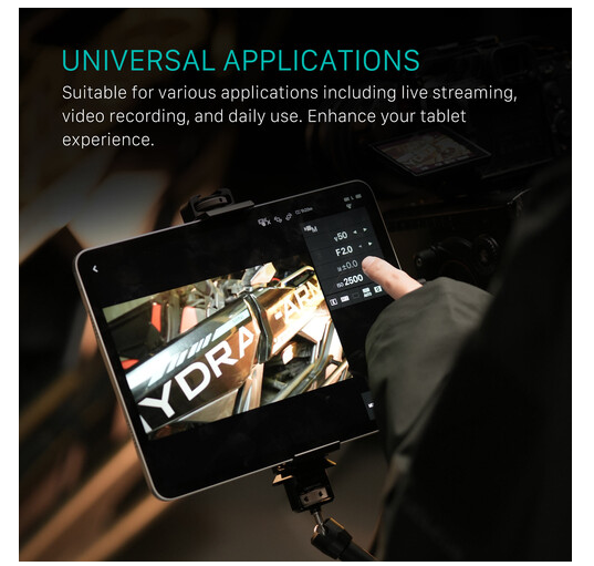 La abrazadera de montaje multifuncional Tilta TA-MMC-AI-B es una abrazadera de aluminio de tamaño de bolsillo muy versátil que sujeta con seguridad cualquier teléfono o tableta (ancho de 4,1 a 9,4 pulgadas, incluidos todos los iPad) y lo convierte al instante en un monitor profesional o pantalla de dirección con una placa inferior Arca-Swiss a doble…