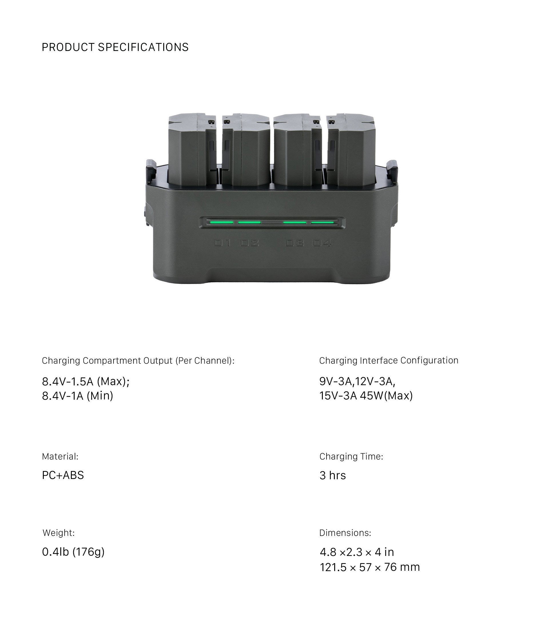 • CUATRO RANURAS permiten a los usuarios cargar cuatro baterías a la vez