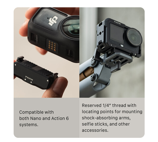 • 1 × Placa base de montaje de liberación rápida Tilta para DJI Osmo Action 6 y Nano