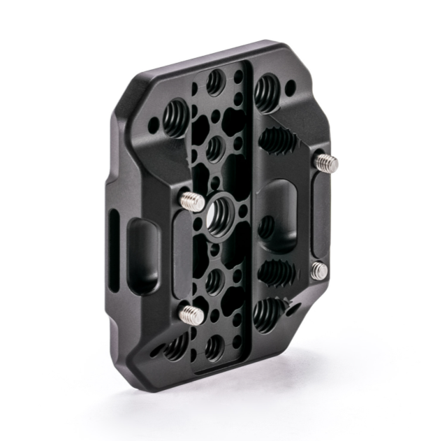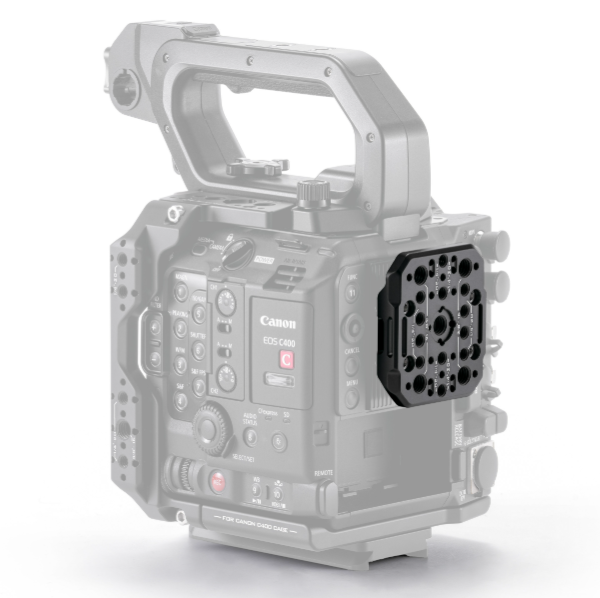 Esta placa trasera universal amplía las opciones de montaje de la cámara Canon C400 de la forma más sencilla posible. Está fabricada en aleación de aluminio mediante mecanizado CNC, cuenta con herrajes de acero inoxidable y presenta un acabado negro mate. Se fija de forma segura a las roscas traseras de la cámara y ofrece una rejilla de roscas para pasadores de fijación según el estándar ARRI (1/4"-20 y 3/8"-16) para una sujeción firme de los accesorios. Los orificios integrados para correas permiten fijar de forma segura mini placas de batería (por ejemplo, de la marca Tilta), soportes para SSD o transmisores mediante cordones elásticos o velcro, sin aumentar el peso. Con un peso de tan solo 0,5 lb, añade un peso mínimo y, al mismo tiempo, aumenta significativamente la funcionalidad: es ideal para rodajes de documentales y configuraciones con gimbal, donde una jaula completa sería innecesaria, pero es imprescindible disponer de alimentación adicional o accesorios.