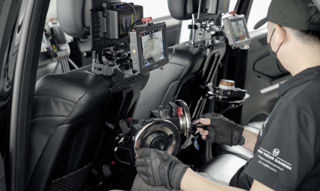 El soporte Tilta Rear Seat Monitor Mounting Bracket Pro está diseñado para fijar de forma segura monitores y controladores de gran tamaño en el asiento trasero de un coche equipado con una cámara. Se fija al reposacabezas y cuenta con un soporte de suelo largo para mayor estabilidad. La parte superior incluye un punto de montaje articulado de 1/4″-20 para monitores y una placa de batería V-Mount integrada para alimentar los dispositivos. Este resistente soporte es ideal para montar sistemas de control de mayor tamaño, como por ejemplo los Master Wheels de DJI.