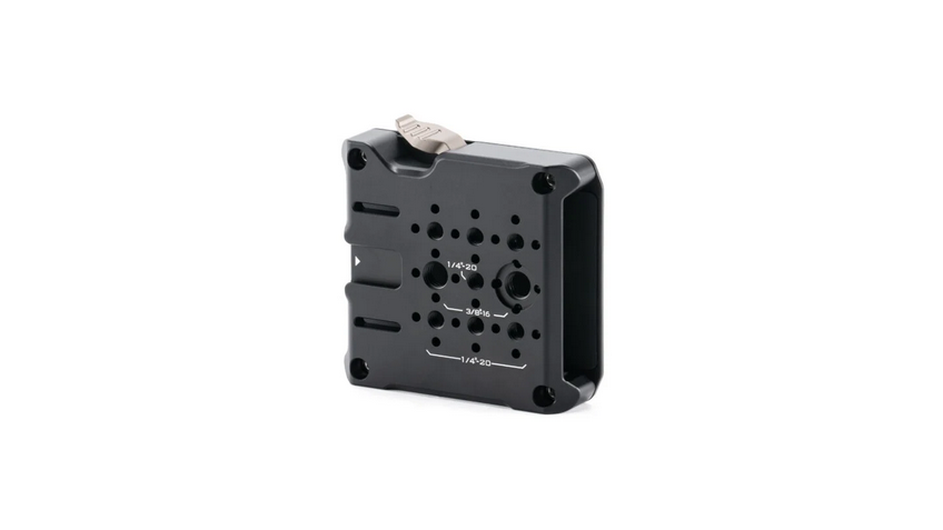 Esta placa lateral facilita la transición entre configuraciones horizontales y verticales y, en el montaje vertical, sirve como placa inferior. Su diseño sofisticado incluye roscas estratégicamente situadas que permiten alinear perfectamente la placa base con el centro óptico del objetivo, lo que garantiza la precisión de los ajustes profesionales.