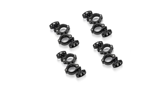 Estas 4 abrazaderas de montaje ajustables permiten fijar un riel de fijación rápida de 50 mm en prácticamente cualquier configuración.
