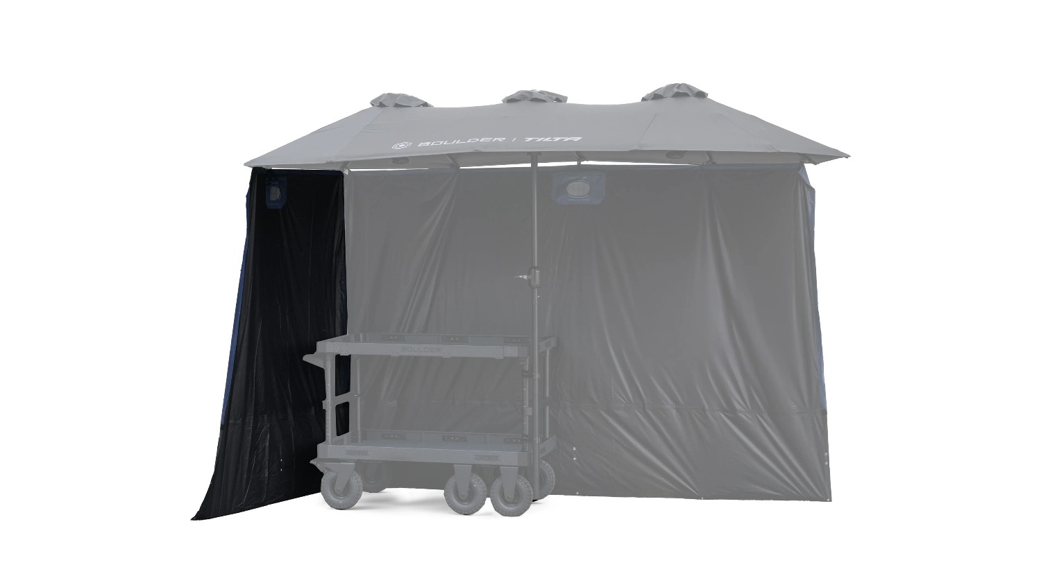 El parasol Tilta para el carro de cámara Boulder Extended Umbrella (2 paneles) ofrece una protección lateral modular que reduce el deslumbramiento y los reflejos, y ayuda a crear un entorno controlado para la monitorización profesional en el plató.
