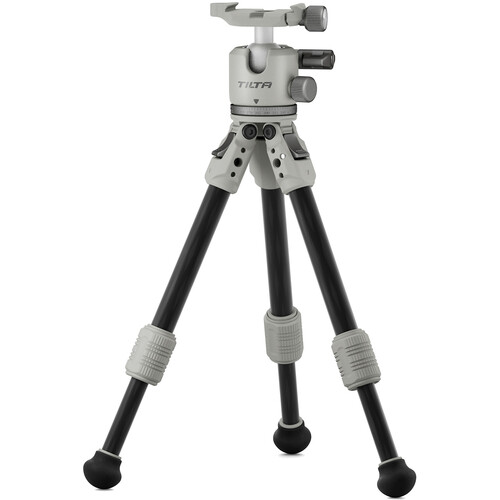 El cabezal esférico de mesa de Tilta, con patas de fibra de carbono de 1 grado en color blanco nieve, ofrece un soporte estable para ajustes ligeros de la cámara, ideal para uso de mesa o viajes con equipaje compacto.