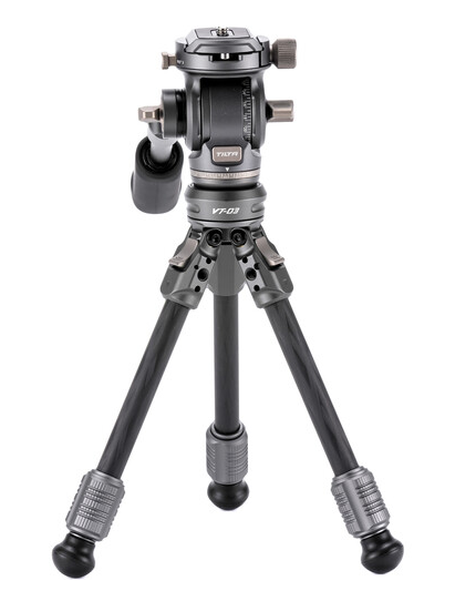 El Tilta TT-VT03-FB-SG VT03 es un trípode de mesa ultracompacto de gama alta con cabezal fluido en el característico color Space Gray, que combina un cabezal fluido con resistencia realista (giro de 360°, +90°/-60° de inclinación) con patas ligeras de fibra de carbono de un solo tramo, que garantizan movimientos suaves de la cámara y un soporte firme con un peso de 3 kg en un paquete de bolsillo de 28 cm una vez plegado, ideal para creadores de contenido, vlogueros, fotógrafos de productos y usuarios de cámaras sin espejo/cámaras de bolsillo que necesitan un rendimiento profesional cuando están de viaje.